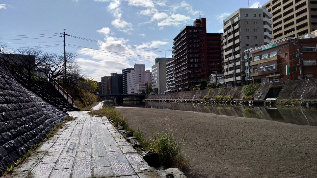 西田橋では川岸に降りれる階段があり川面を楽しめました。