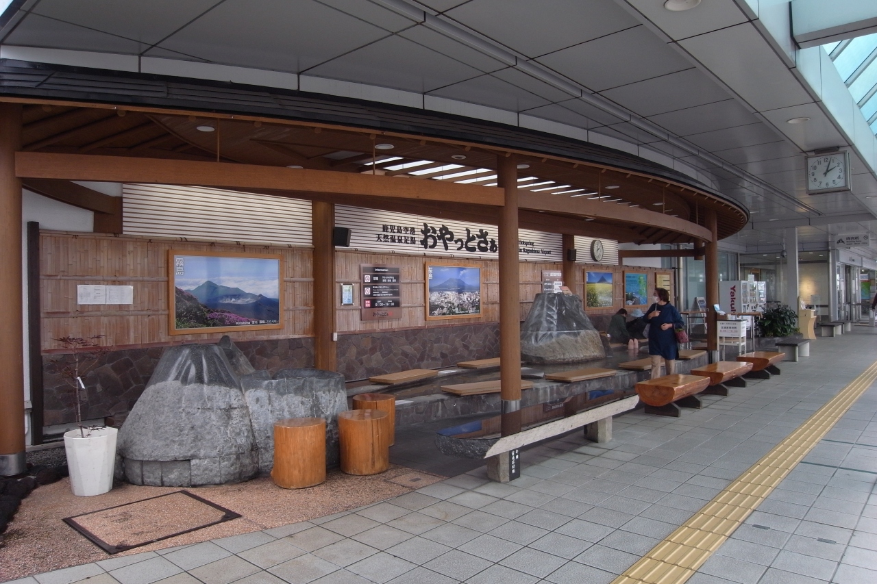 バスターミナル前に天然温泉足湯おやっとさぁ在り。