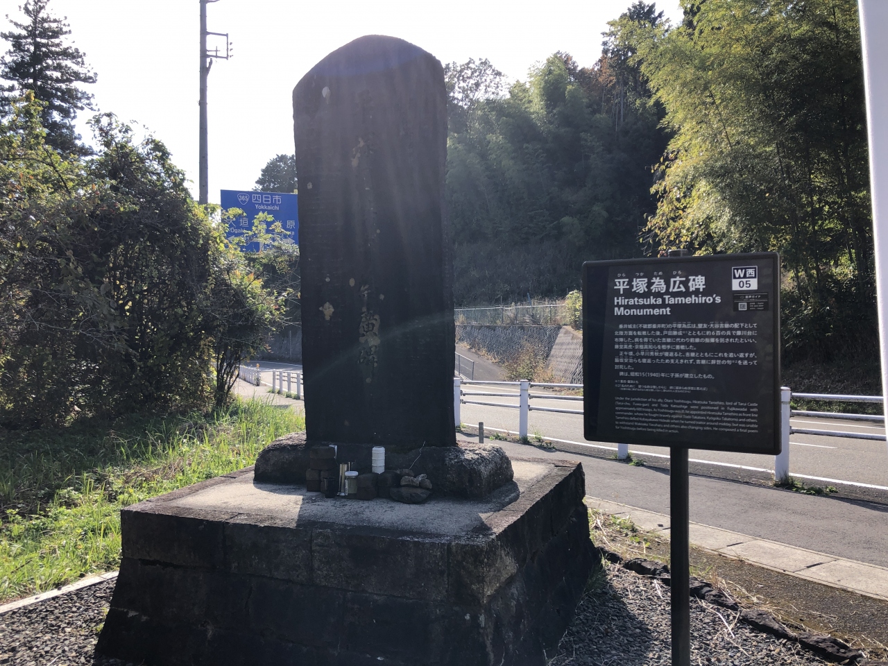 そんな義に熱い平塚為広の碑は、為広が討ち死にしたとされる、国道21号から少し入った広域農道脇にひっそりと建っています。そこはまさに盟友大谷吉継墓所がある藤川台の麓でした。私は宇喜多陣跡からダム横の道を通ってここに行きたかったのですが、ダム横の道がスズメバチの巣が近くで見つかったため通行禁止。仕方なく国道まで出て遠回りしていきました。