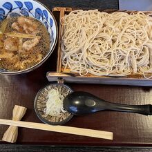 あきる野市、山田通り沿いにある信州安曇野産のそば屋です。カウンターに小上がり席があります。イベリコ豚のつけ汁そばをいただきました。上品な手打そばは細く打立れており、のどごしもさわかやです。店内のそば打ち場を眺めることもできました。ごはんものもあります。