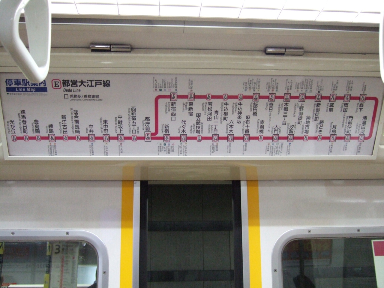 浜松町に隣接した大門から麻布十番、六本木を通り、新宿へ行くのに便利な地下鉄。新しくできた路線なので地下深くを走っており、ホームへたどり着くのは少々大変です。