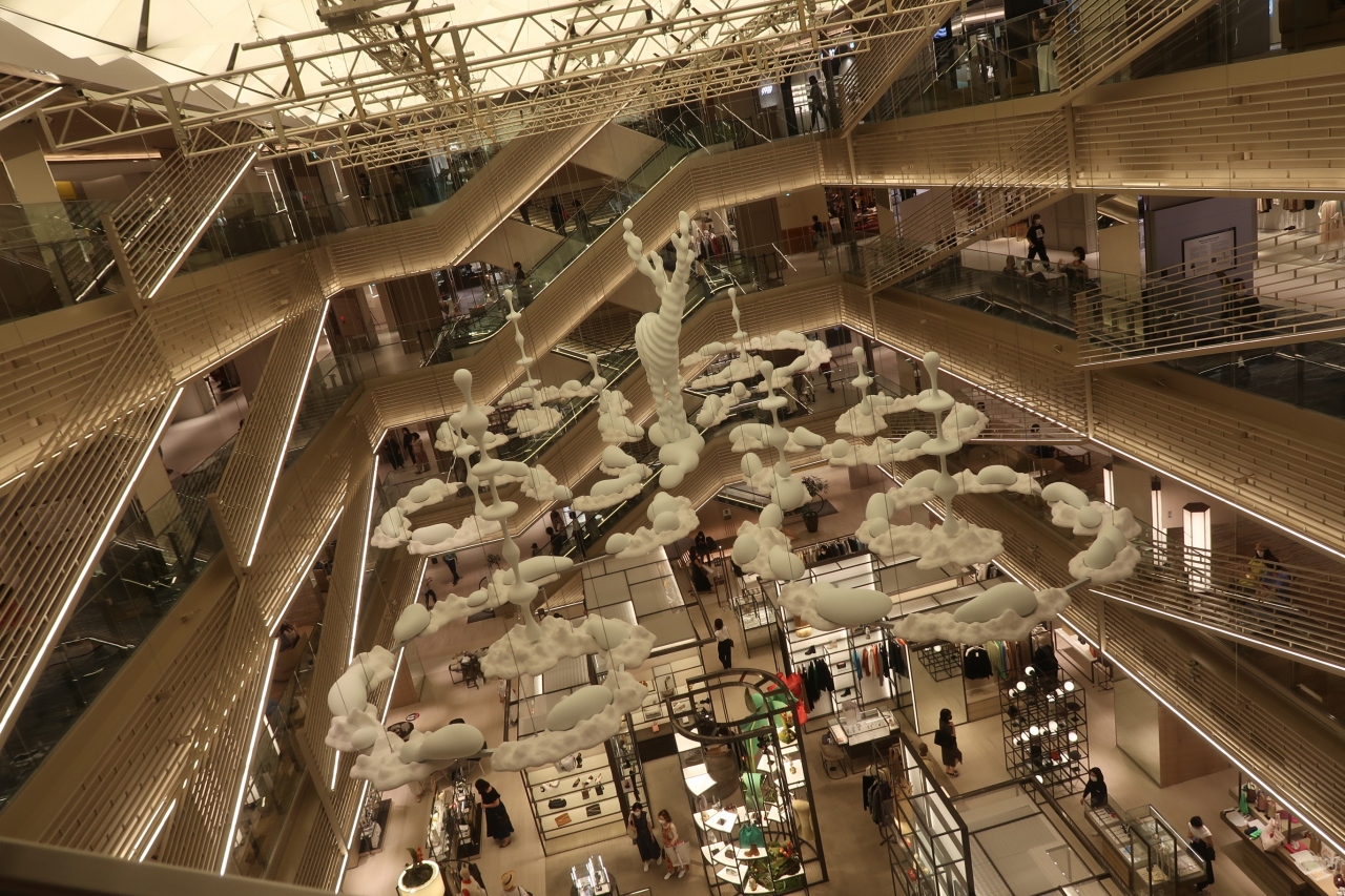 蔦屋での展示をみたくて行きました。こちらは中に入ってるお店もそうですが、建物自体のつくりもゆとりがあって高級感があり、せせこましくないのがいいです。地下の食品や蔦屋の本以外は滅多に買いませんが、歩いているだけでハイセンス空間を堪能できます。吹き抜け部分のアートオブジェも素敵です。