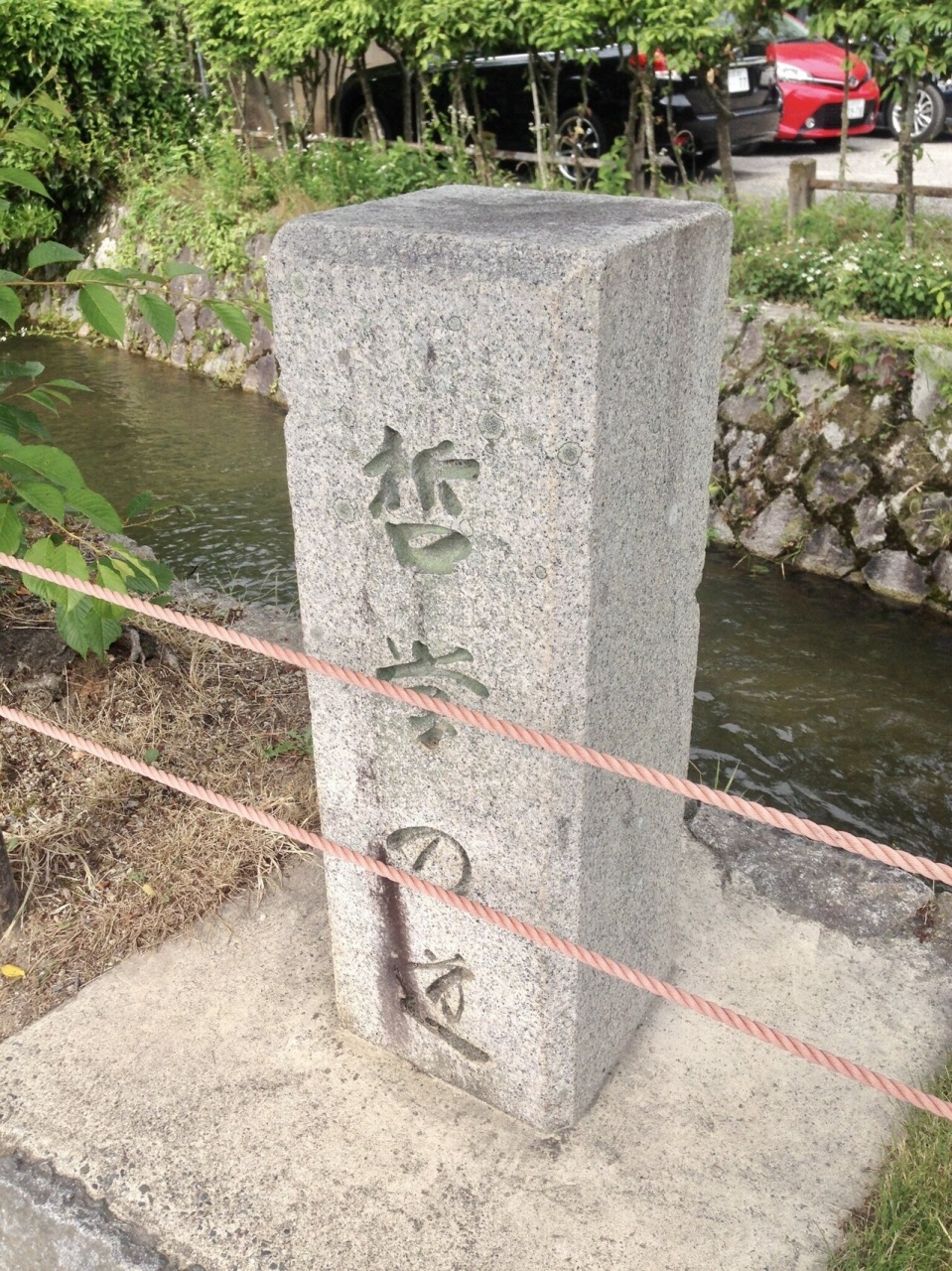 南禅寺から銀閣寺に向かう途中に、「哲学の道」を通りました。名前の由来は、京都大学教授の哲学者西田幾太郎らが思索にふけりながら歩いた道で、そう呼ばれるようになったそうです。正式な名称となったのは1972年のことだそうです。道の脇を流れる川(運河)は、琵琶湖から引かれた疎水です。