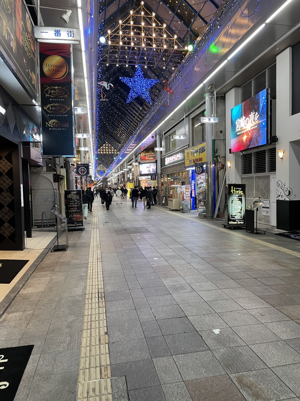 宮崎市内の一番の繁華街です。アーケードになっていて待ち合わせ場所にも使われているようです。アーケード内には飲食店もたくさんあります。アーケードがあるので雨の日も大丈夫です。イベントなども時々やっている場所です。