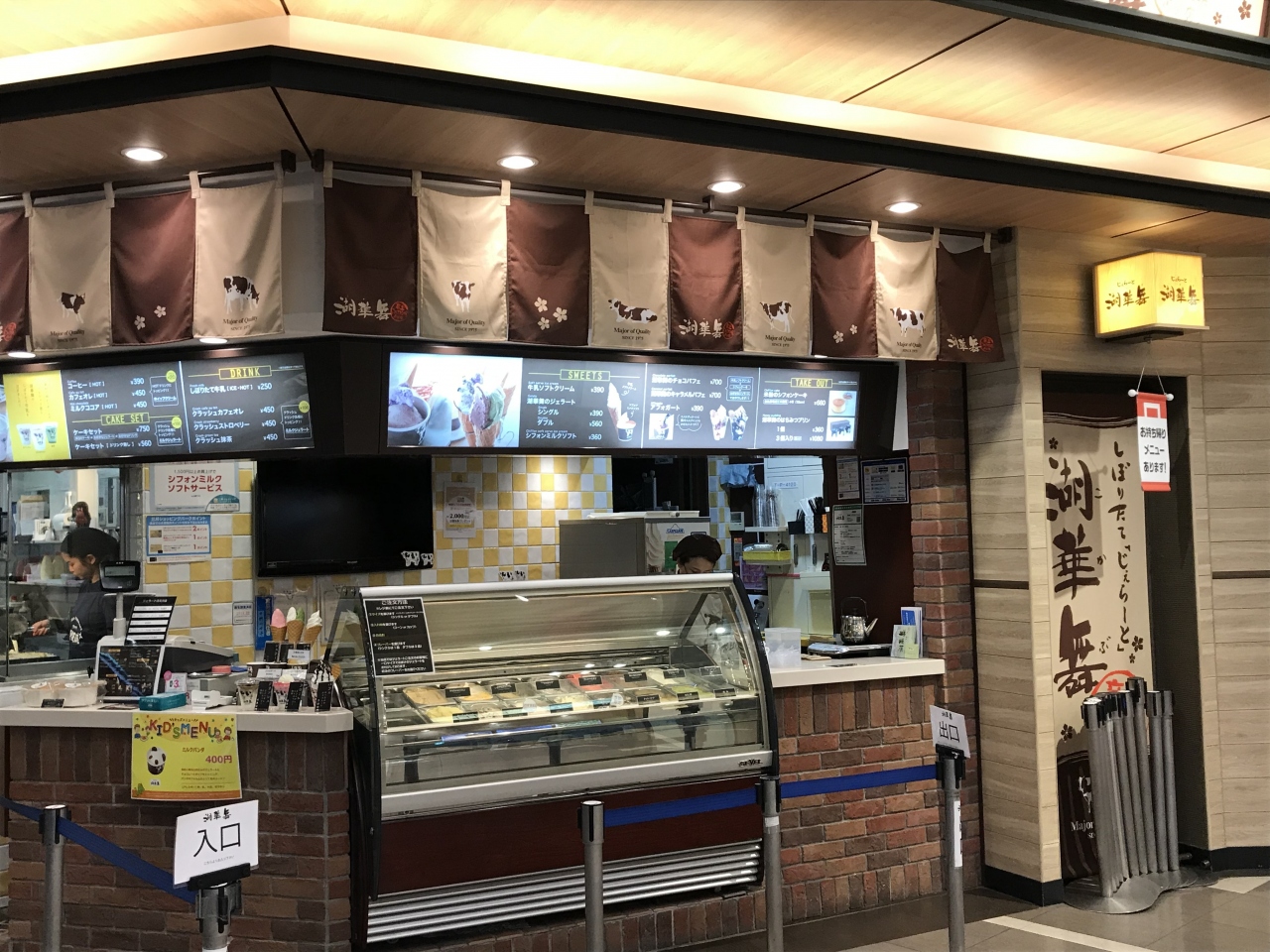 湖華舞は、三井アウトレット竜王のフードコート内にあります。今回頂いたのは、ほうじ茶とヘーゼルナッツカフェを選択。ほうじ茶は、ほうじ茶特有の芳ばしさと少しの苦味。ミルキーなジェラートとのバランスが最高でした。濃い目のほうじ茶がすごく私好みでした。ヘーゼルナッツカフェは、予想より甘めでしたが、ナッツの歯触りと香ばしさが珈琲にピッタリ。私はもう少し珈琲に苦味があると嬉しい。疲れ果てた体がシャキッとするような、美味しいジェラートでした。