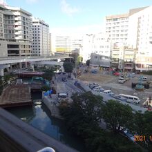 ホテルの最寄り駅が県庁前駅だったので、ゆいレールに乗るたびにこの川をホームから眺めていました。