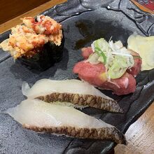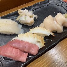 赤ほやや蟹ふんどし等、あまり関東では見られないお寿司もあり、根室産の魚介が充実しています。