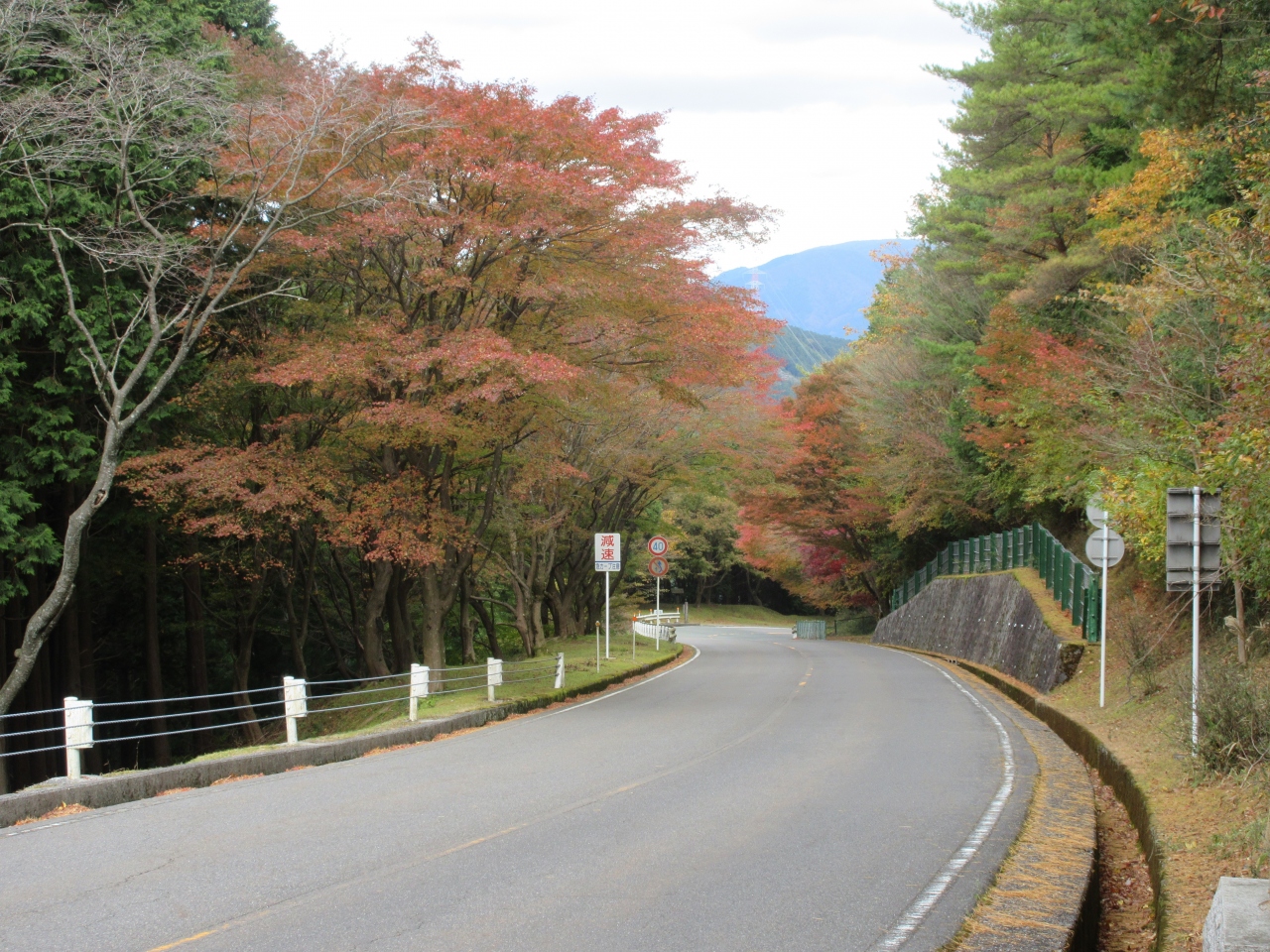 琵琶湖側の仰木ゲートから比叡山山頂までの道路です。琵琶湖展望台、横川、峰道レストラン、西塔、東塔、比叡山頂を結ぶ道路です。横川から東塔まで徒歩で約2時間かかるようですが、遊歩道はドライブウェイの近くにありました。東塔と西塔は比較的近いですが、横川まではカーブが多く車かシャトルバスで移動しないと大変です。整備された道路で、シャトルバスから紅葉や遠景の琵琶湖を楽しみました。