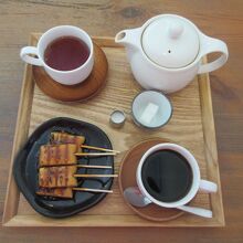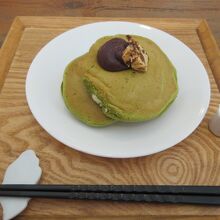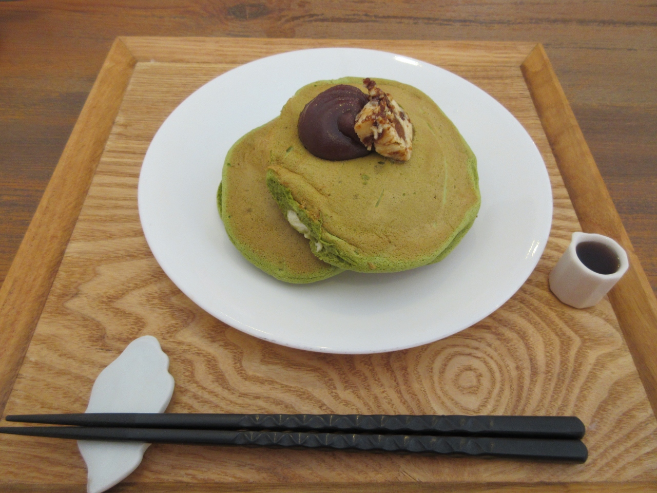 四条駅や阪急烏丸駅から数分のところにあります。蛸薬師通に面した甘味カフェです。みたらし団子やわらび餅で有名な梅園のカフェです。京都旅行最終日に休憩がてら昼食を兼ねて利用しました。名物の抹茶ホットケーキのドリンクセットとみたらし団子を注文しました。ホットケーキが焼き上がるまで、みたらし団子とドリンクが運ばれてきました。焦げ目が香ばしい小さなみたらし団子は、京都7日目で疲れた胃と身体に優しかったです。抹茶ホットケーキに柔らかいこしあんと黒蜜バターがのっていました。ざらっとした黒蜜が練りこまれたバターは溶けにくかったですが、ホットケーキとの相性がよかったです。明るい店内、ドライフラワーで飾られた天井、静かな曲が流れて京都旅行の穏やかな締めくくりができました。京都に来たら再び寄ってみたい店です。