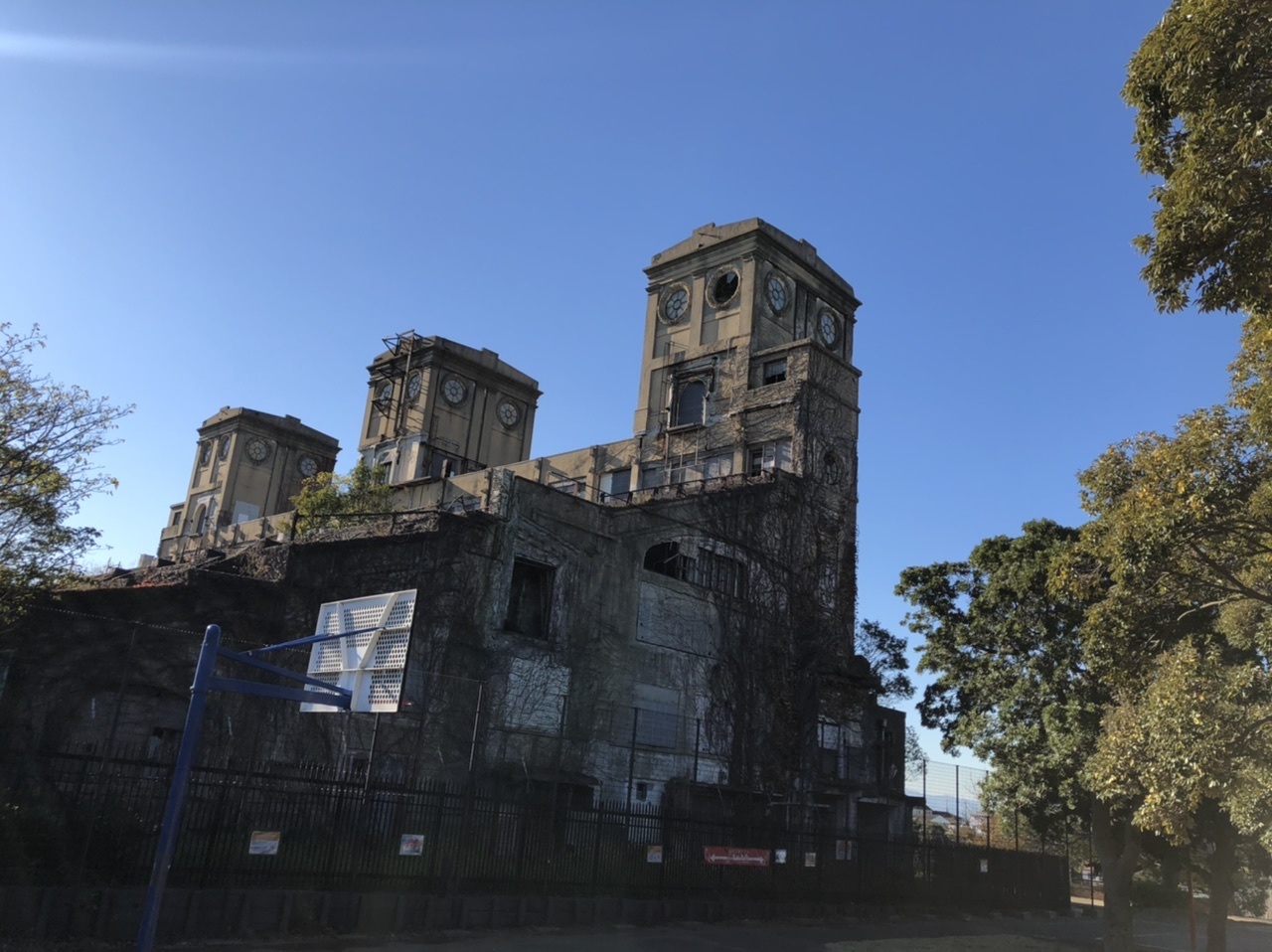 実際に行ってみて驚いたのが、建物は立ち入り禁止になっていて、米軍住宅のエリアと隣接しているため正面からはみることができないです。
