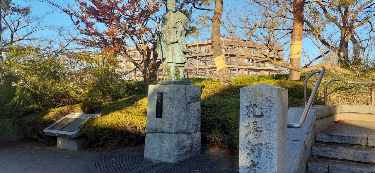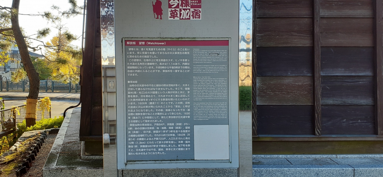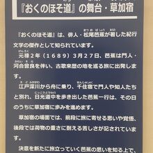 松尾芭蕉が「奥の細道」で最初に宿泊した宿場町ということで松尾芭蕉の銅像があります。