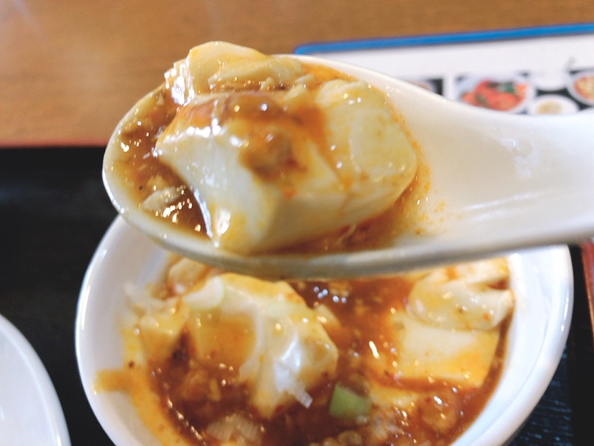 Aセットにするとご飯、スープ、ザーサイに麻婆豆腐がついて875円。