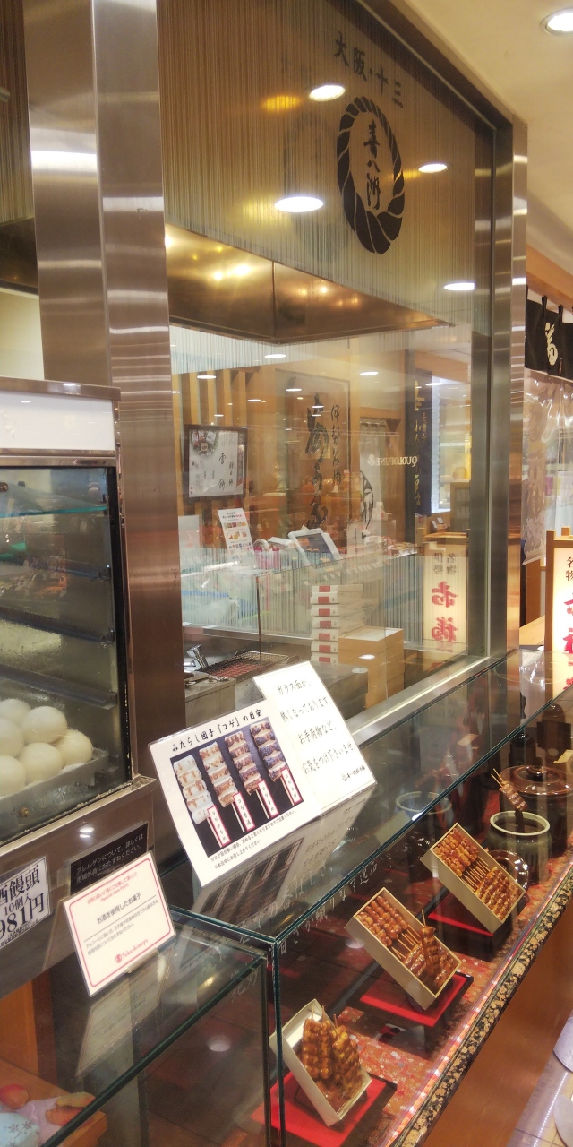 大阪高島屋は南海電鉄のなんば駅に直結しているデパートです。服飾雑貨、コスメ、デパ地下スイーツなどが充実しています。今回は地下一階にある喜八洲さんで有名なみたらし団子を買って帰りました。甘くておいしかったです。