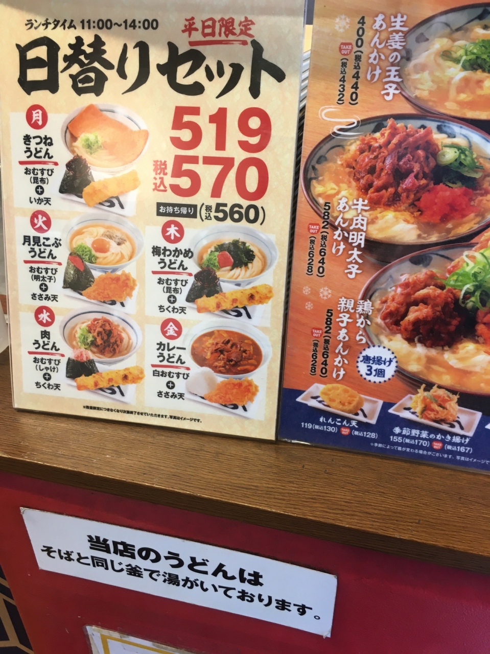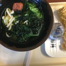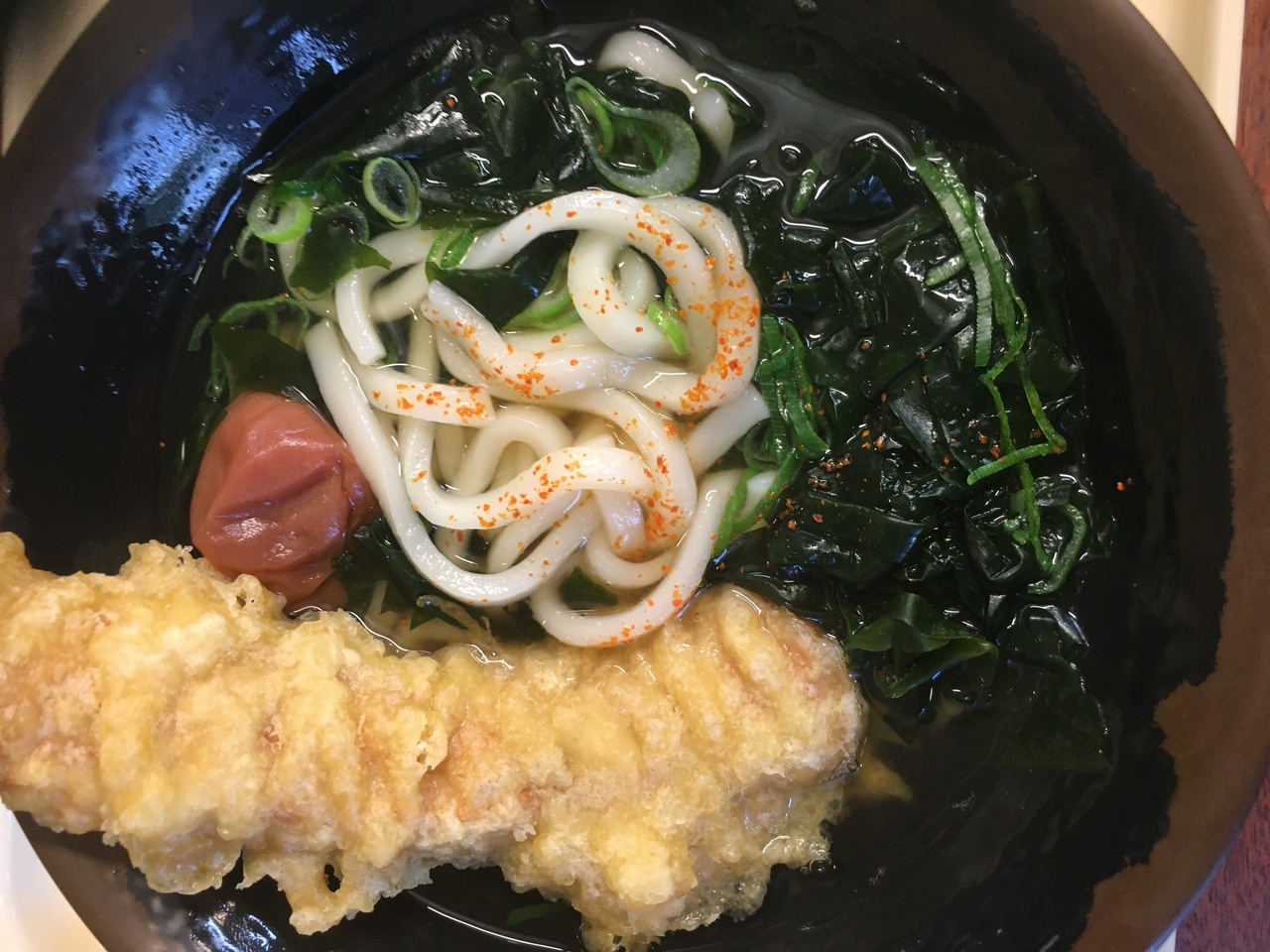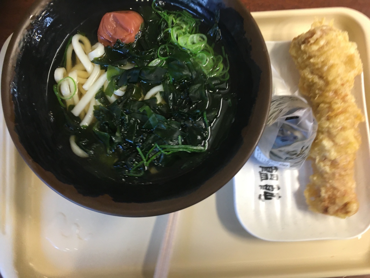 店内入り右横で、うどんを注文すると直ぐに茹でてくれ、ちくわ天等のトッピングは自分でとり、料金を払うセルフサービスの店です。日替りセットを食べましたが、うどんは茹で加減が良く、ちくわ大きく汁に漬けると旨さが増しました。おにぎりは小さなサイズでした。