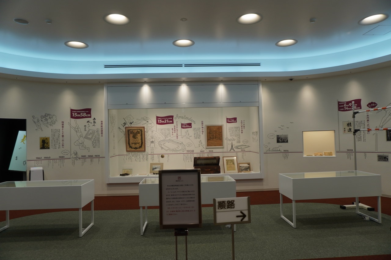 織田幹雄記念館は、海田町の中心部、織田幹雄スクエアの2階。織田幹雄は海田町出身で、日本人初のオリンピック金メダリスト。1928年のアムステルダム大会では、走高跳、走幅跳では予選敗退ながら、三段跳では見事金メダル。記念館は、その足跡を海田町の少年時代から紹介しています。