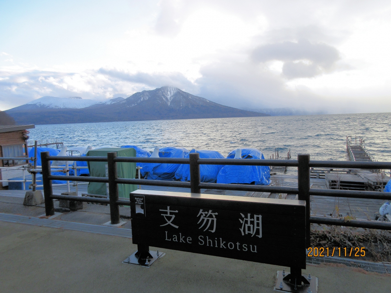 札幌空港から小樽へ行く途中で立ち寄る。風のある肌寒い日、支笏洞爺国立公園内の観光mスポット、支笏湖は少し波があり、観光客は我々ツアーの一行のみでした。支笏とはアイヌ語で大きなくぼ地を意味すると言われ日本で、水深360メートルで田沼湖に次いで2番目の深度で日本最北の不凍湖です。