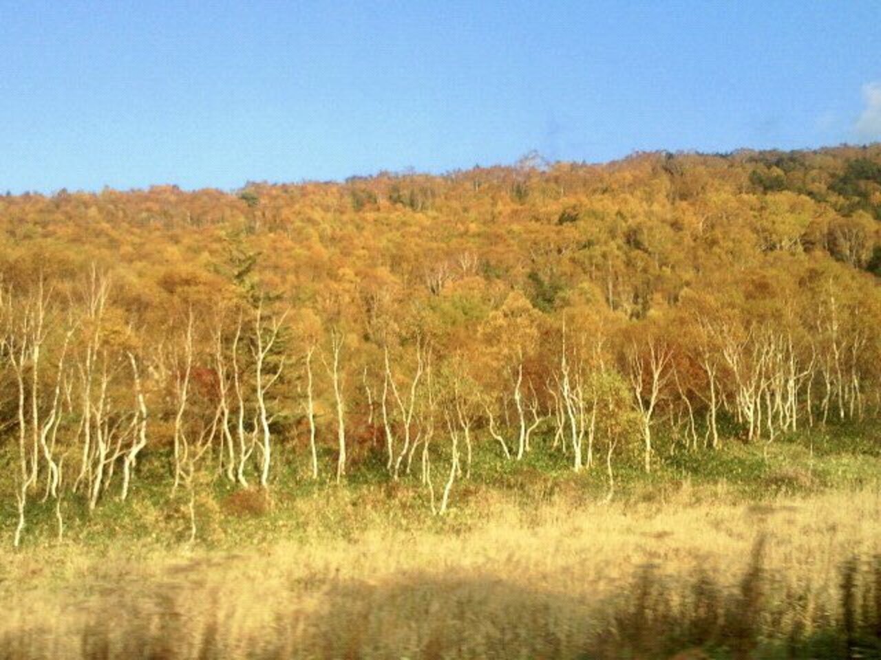 志賀高原に紅葉を見に来ました。特に印象が残り、綺麗だったのが「木戸池」でした。畔から見える白樺の白い幹と燃えるような赤や黄色のコントラスト。そして、水面に映る紅葉も、風がなくて水面に波がなく、鏡のように水面に映り、さらに素晴らしさが増して綺麗でした。スキー場の駐車場に停めました。