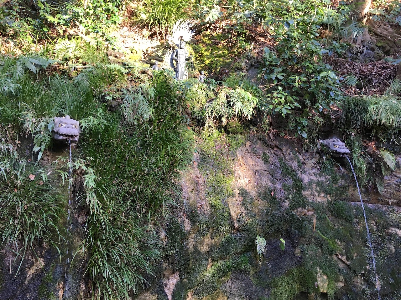 川に水が落ちていくような滝ではなく、斜面に出た竜の口から細く水が出ていました。