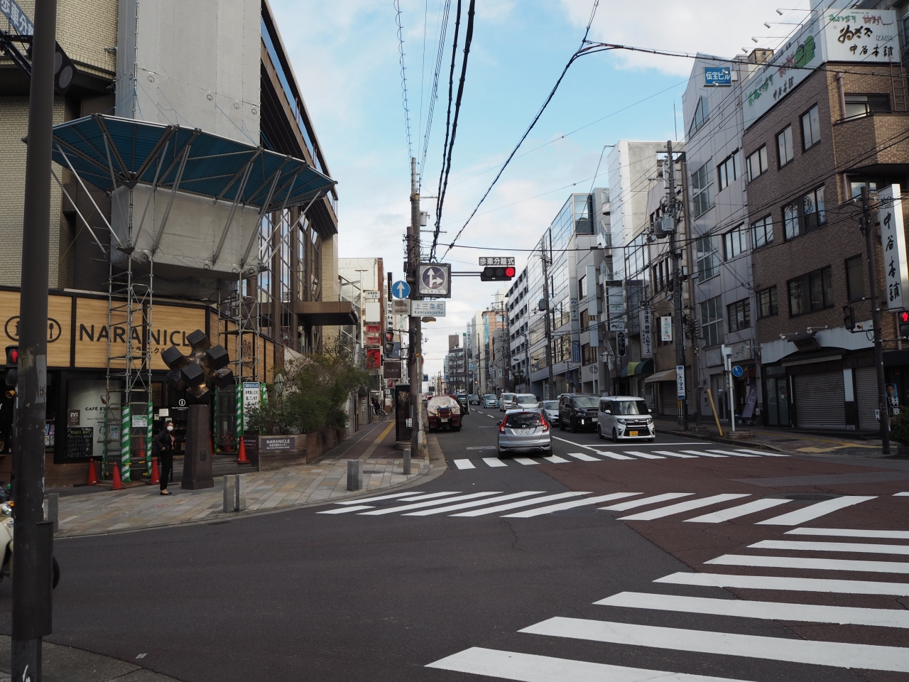 やすらぎの道は奈良市街地の中心部を南北に走る道です。近鉄奈良駅の西側にある道です。大宮通りや三条通り付近の交差している場所は商業地区で、オフィースビルなどが多くあります。また車の交通量も多いです。ただ奈良らしく通り沿いには寺院や神社なども見られます。