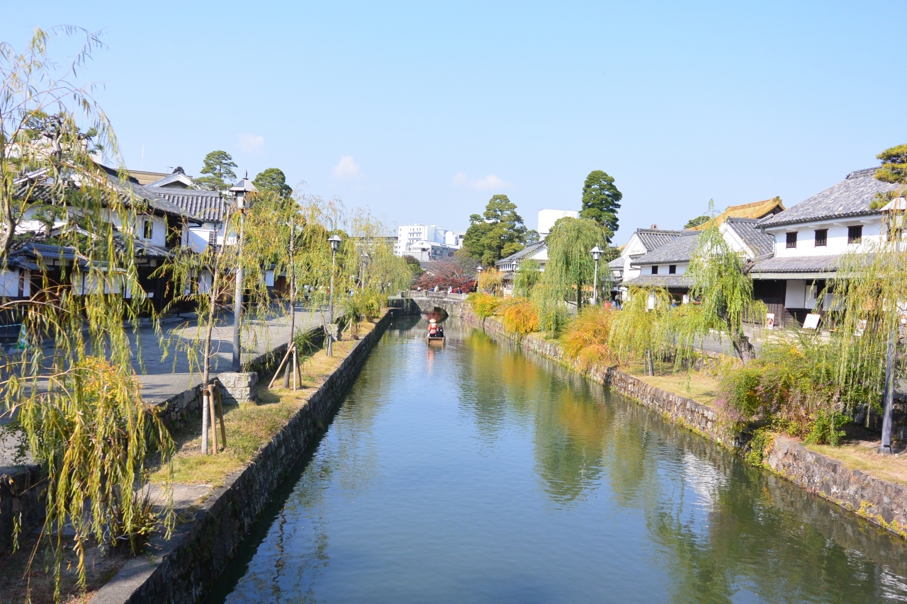 運河と蔵屋敷の風景、よくこれだけのものが残ったなと感心します。蔵屋敷以外にもギリシャ建築のような大原美術館、擬洋風の建物、町屋などがつらなりどこをとっても絵になる風景です。蔵や町屋を利用したショップや飲食店がたくさんあるのも魅力です。