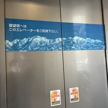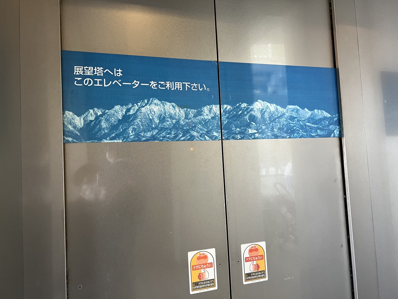 富山市役所内の展望台行きのエレベーターに乗ります。