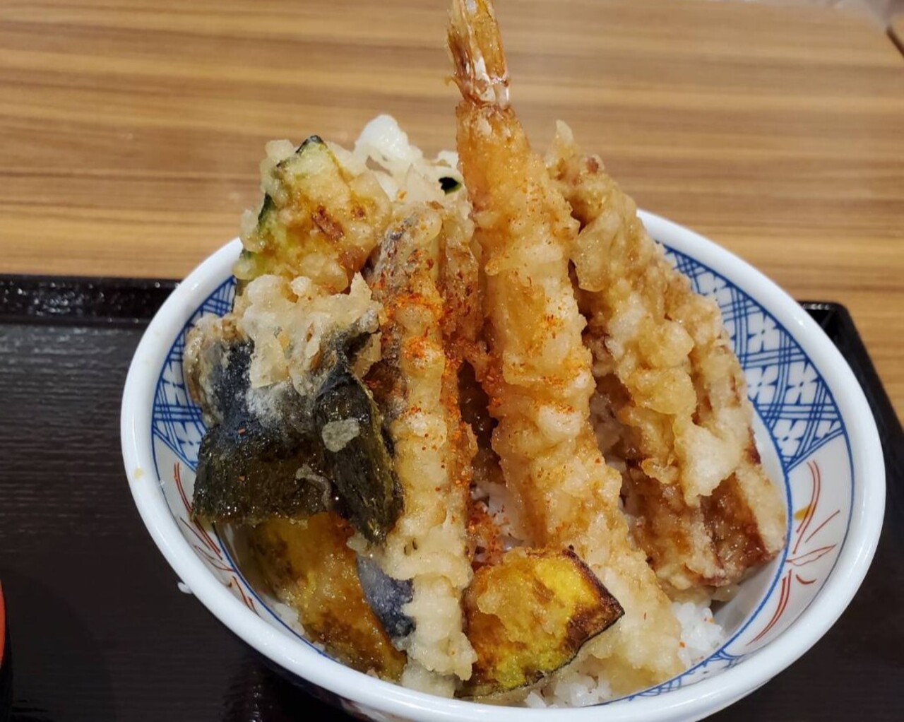 今回はフードコートにある天ぷらのお店にいきました。揚げ天まるというお店です。比較的安価に天丼がいただけて、ボリュームもあり、天ぷらもかなり様々な種類がのっていました。大満足。
