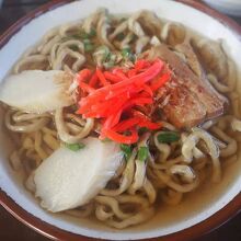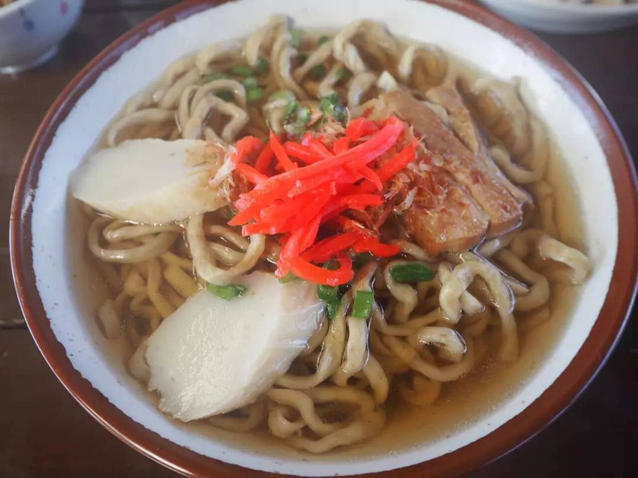 沖縄そばの麺にもずくが練り込まれているのです。見た目は沖縄そばにしか見えませんが一口食べれば沖縄そばとはまた違った風味を感じられてとても個性的だなと思います。