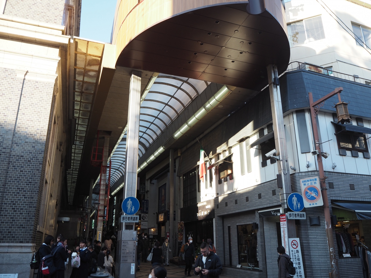 近鉄奈良駅の東口を降りてすぐの場所に東向商店街のアーケードがあります。細い通りですが、地面はきれいに整備されて、高い天井には透明に天井で光も差し込むようになっています。商店街は地元の老舗有名店や土産物店、飲食店がそろい人通りも多くにぎやかです。この商店街抜けていくと元興寺やならまちの観光スポットがあります。
