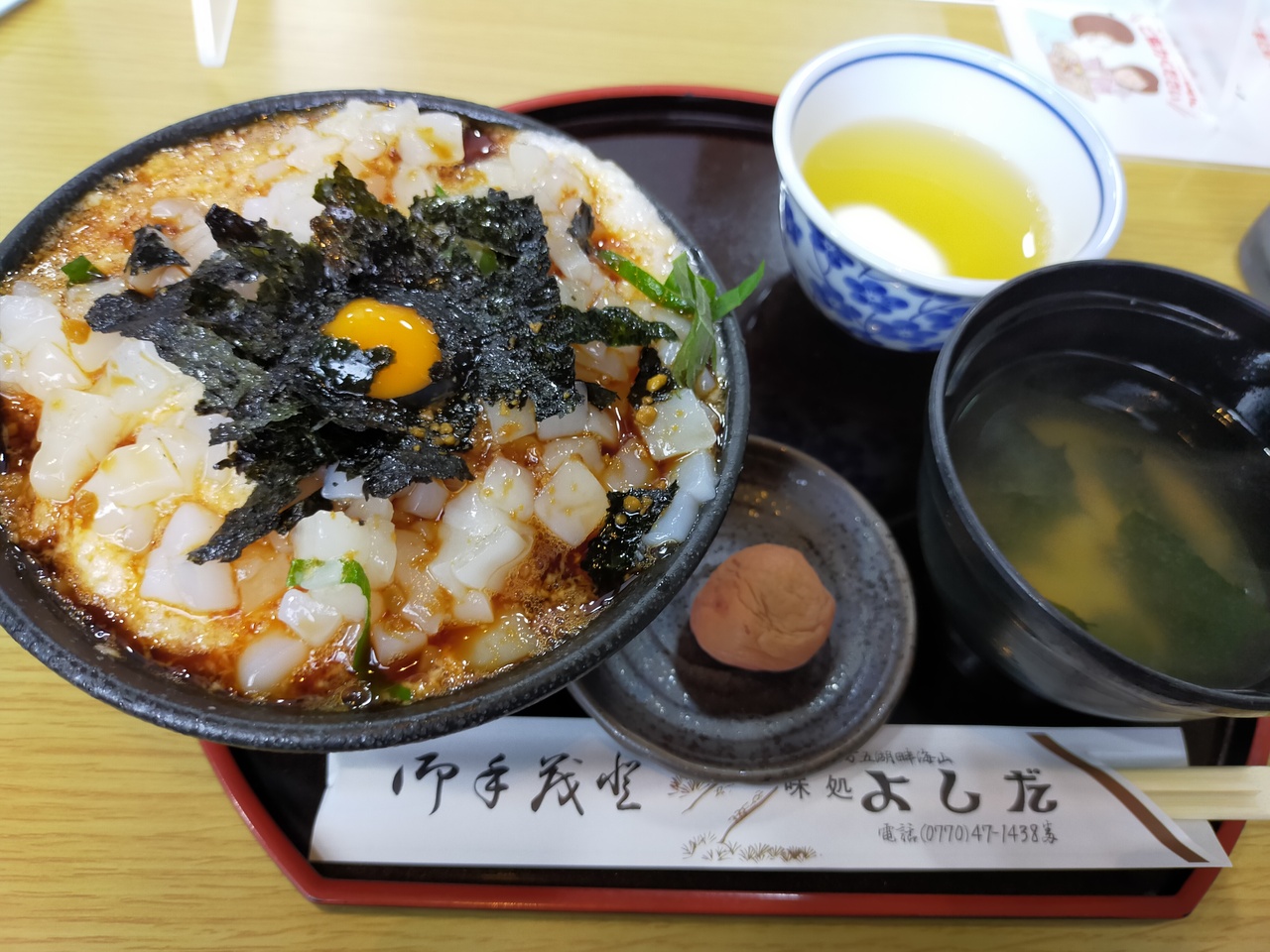 レインボーライン入口近くにあるイカ丼で有名なレストランです。バイクや車がいっぱい停まっているのですぐわかりました。小さく切ったイカに、海苔とたっぷりの山芋、上にうずら卵が乗っていて、かき混ぜて食べると、濃厚味のミックスが味わえました。イカ丼とゲソ揚げのセットもありました。
