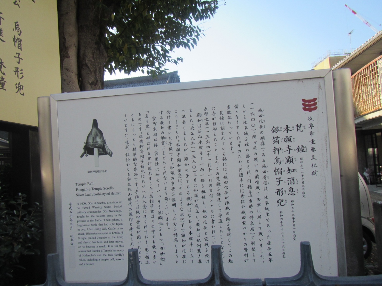 織田信長による楽市楽座ゆかりの寺と岐阜城を訪れた際に天守閣の展示にあったため、帰りに寄ってみました。