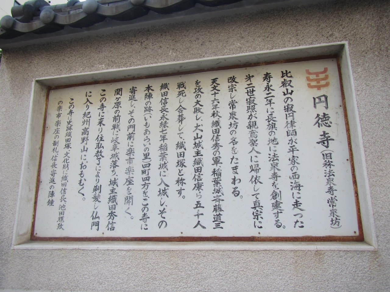 ただ、建物に囲まれた街中の普通のお寺で、楽市楽座にまつわる解説板が立っているものの、楽市楽座はお寺の前で行われていただけで、特にこのお寺が始めた訳でもなく、特に大した見所という感じもしませんでした。