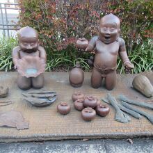 お寺の前の道路脇に楽市楽座を記念する小さな像が飾られていました。