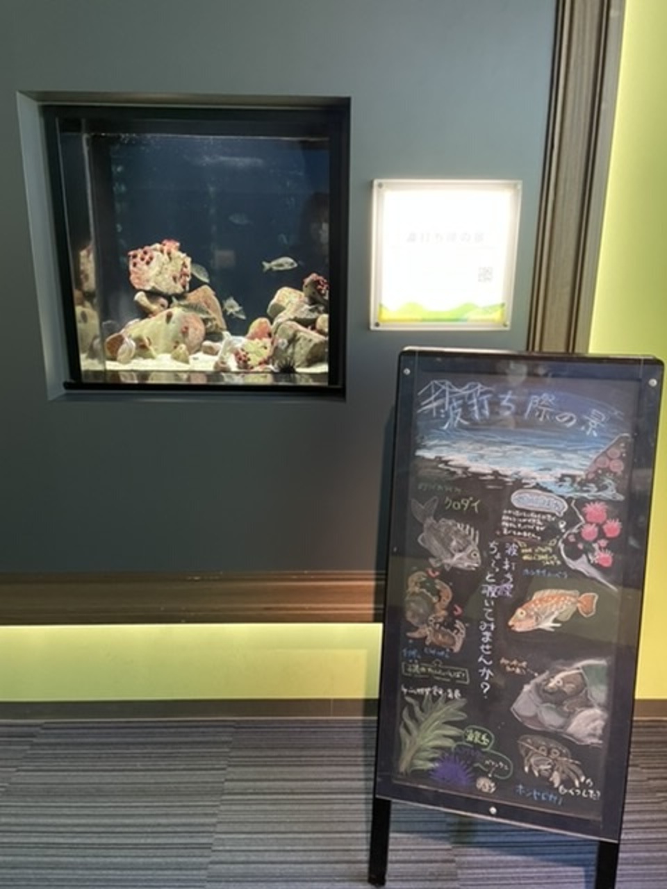 魚の説明書きが、黒板にカラーチョークで描かれていて、温かみを感じました。