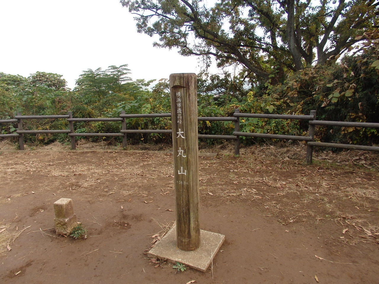 光明寺バス停から瀬上池、いっしんどう広場、円海山等を経て3時間強大丸山山頂(156M)に着きました。展望はありません。山頂は横浜市の最高峰です。富士山は大丸山に登る急木段に入る手前の所から見えましたが、あいにくの曇り日、霞んで良く見えませんでした。本日のコース、標高差は120M、歩行時間も4時間、短い時間の急登りはあったものの平坦な道が多く、年より向きのコースでした