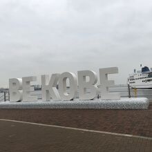 メリケンパーク内にある写真撮影スポットです。海の風景を背景に写真を撮ることができます。人気フォトスポットなので、みんな順番に写真を撮るので、誰もいなくなるまで少し時間がかかります。もっとも、時期的なこともあるし、雨模様だったので、それほど長い時間はかかりませんでした。