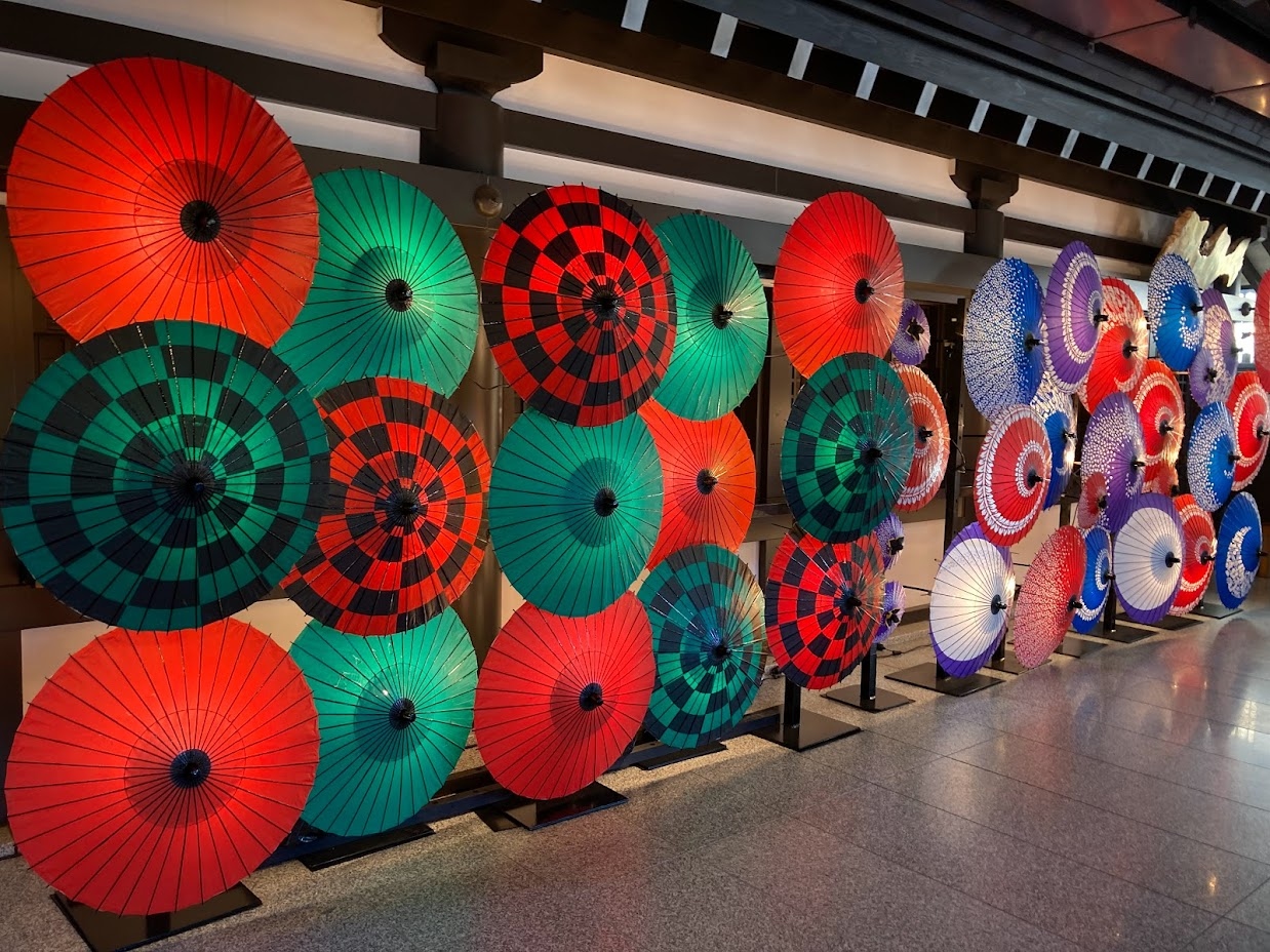 色とりどりの和傘アートも人気の写真スポットになっていました。