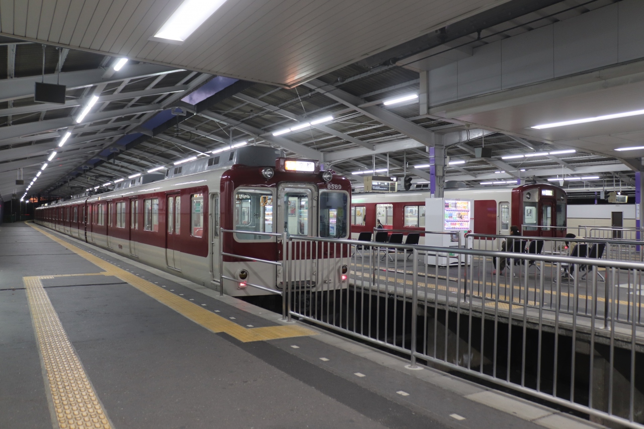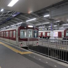 平端と天理を結ぶ近鉄の枝線です。線内折り返しの各駅停車の列車のほか、京都直通の急行が運転されています。終着天理は3面3線の頭端式ホームになっています。接続するJR線は高架で立体交差のような形になっていました。