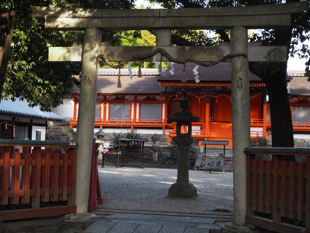 薬師寺の境内に入る山門(南門)のすぐ手前の右側に休ケ岡八幡宮があります。朱色の大きな社殿がすぐ目に入ります。休ケ岡八幡宮は薬師寺の鎮守として建てられたもので、宇佐神宮(八幡宮)より分祀されたものです。薬師寺への参拝の順序は休ケ岡八幡宮に参った後に薬師寺へ参拝するのが正式なコースのようです。