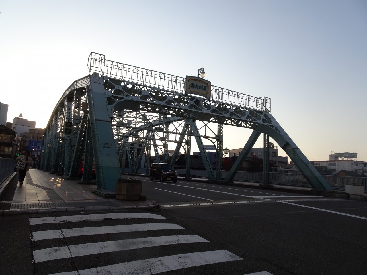 歴史ある橋です。大正時代にその歴史は、さかのぼるそうですかわ、きれいに塗装されていて、そのような感じはまったくしません。60メーターくらいですが、わたると下から見れておもしろいです。観光名所のひとつとしても価値があります
