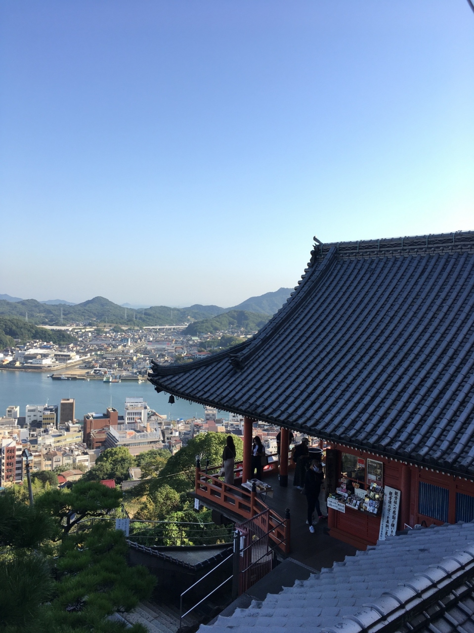 尾道駅から歩いて20分ほどの場所にあります。山の中腹にあり行きはロープウェイで登りました。小さなお寺ですが朱色のお寺と尾道海峡を一緒に見渡せる有名な絶景スポットです!ただ少し残念なのがお参りする賽銭箱近くにTシャツなどのお土産類が雑多に並べられていて景観を損ねてる気がする。