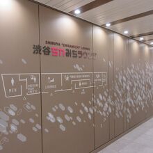 渋谷駅地下、A4とA3b出口の間に造られている施設で、トイレ、多目的トイレ、パウダールーム、授乳室、コンシェルジュがいるラウンジ、身だしなみが整えられるドレッシングルームなどが設置されています。ソラチカカードやJALカード、東急ポイントカードなどを持っていると直接利用できるようですが、持っていない場合でもラウンジ向かいの総合インフォメーションで名前を記入すれば使用できます。身だしなみチェックができる便利な施設ですが、現在はコロナ感染対策のためトイレ以外は利用できなくなっていました。