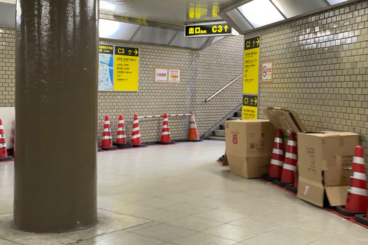 残念なことですが、東京五輪2020が終わり、またこの地下道にはダンボールが溢れています。