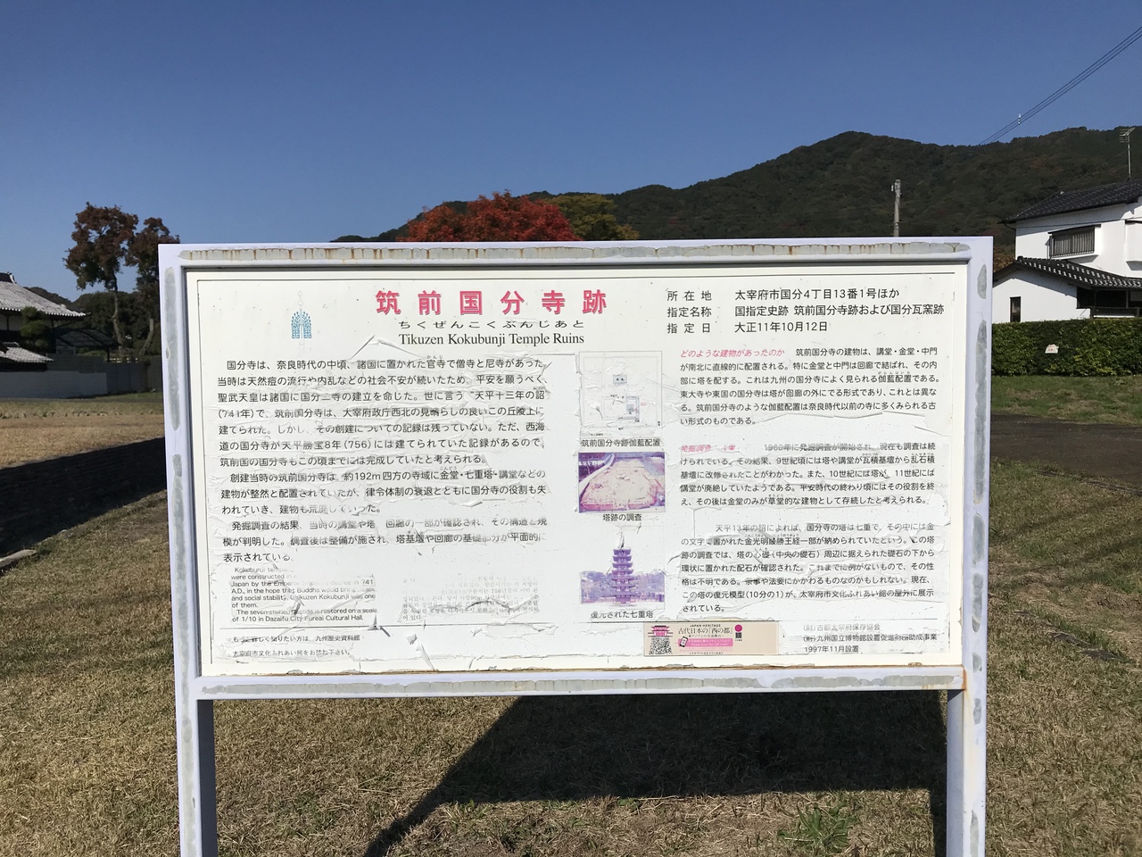 奈良時代聖武天皇の勅命により全国に建てられた国分寺のひとつ。筑前国分寺は九州各国の国分寺の中心だった。