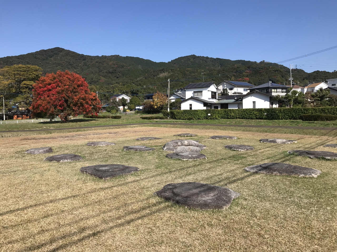 現在は住宅街に見事な礎石が残る場所で、すこし離れた場所に筑前国分尼寺跡がある。