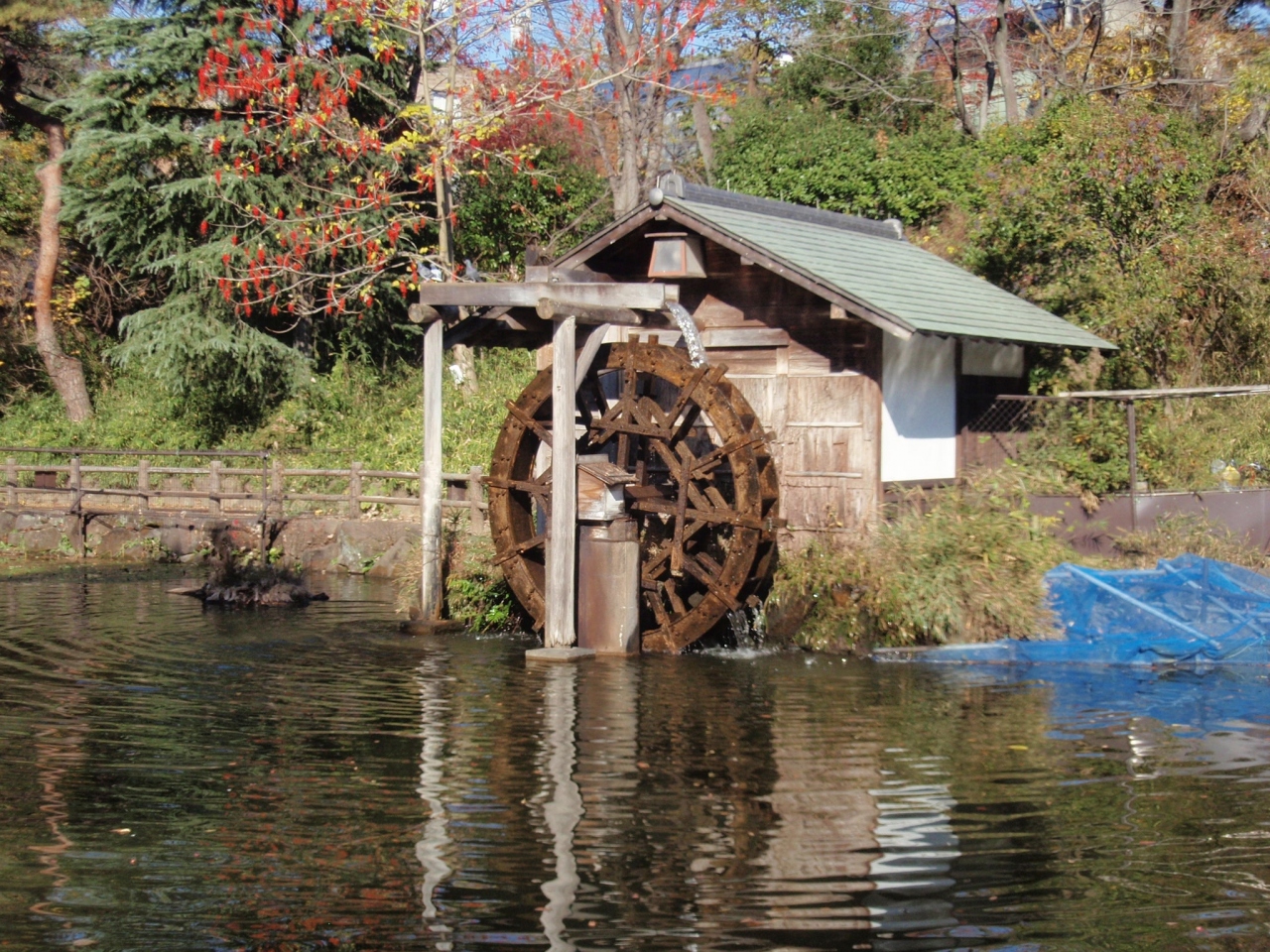 市開発により無くなり、この松濤公園の池は数少ない湧水池として貴重な池であるそうです。子供遊具も多くあり、区民の憩いの場や散歩コースとしては良い公園ですが、観光目的の公園ではありません。しかし街の真ん中で水車がある風景を見れるとは驚きです。イイギリが綺麗な赤い実を沢山つけていました