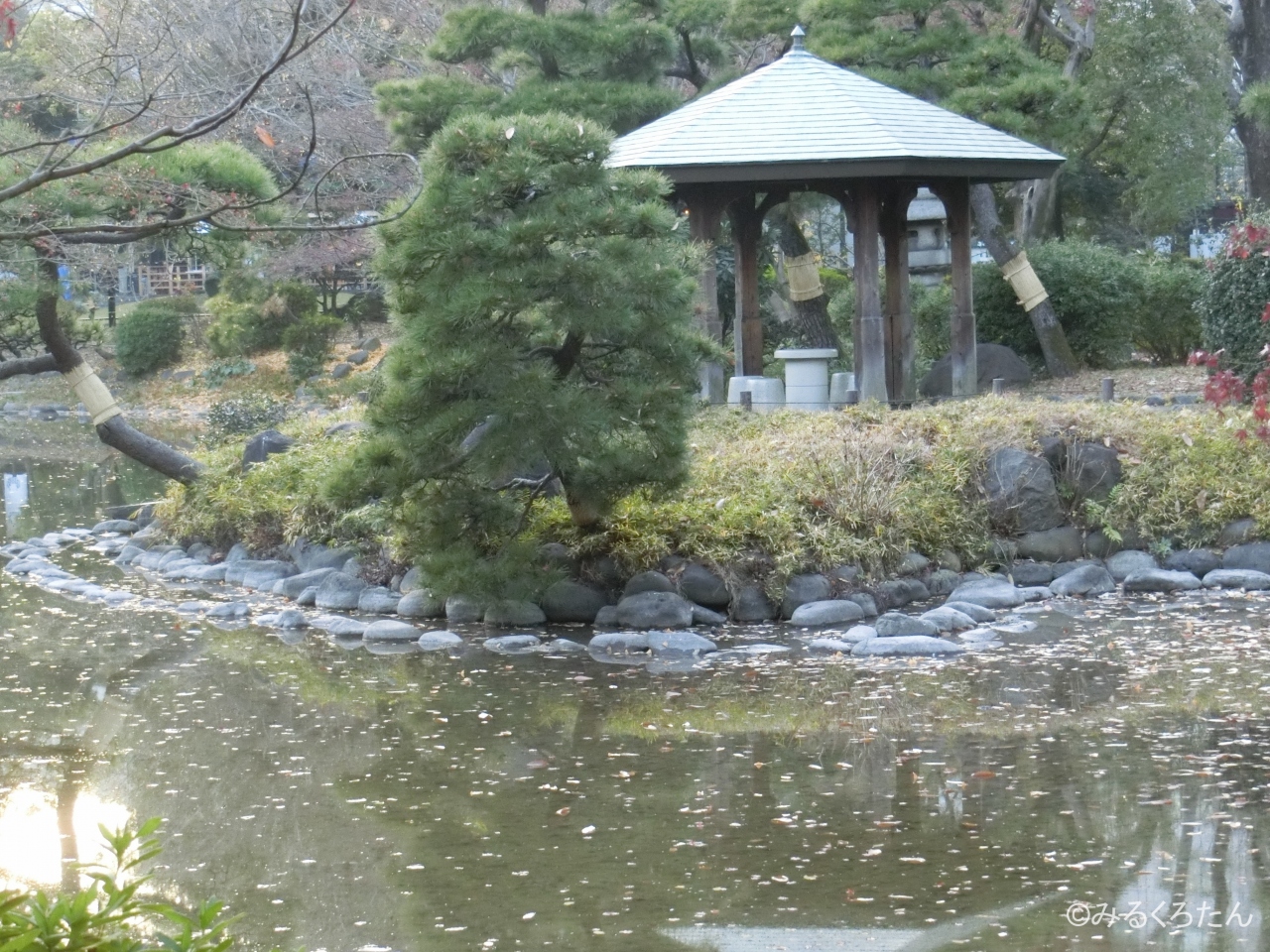 特に寒い冬の日に、中央の鶴の噴水が凍り