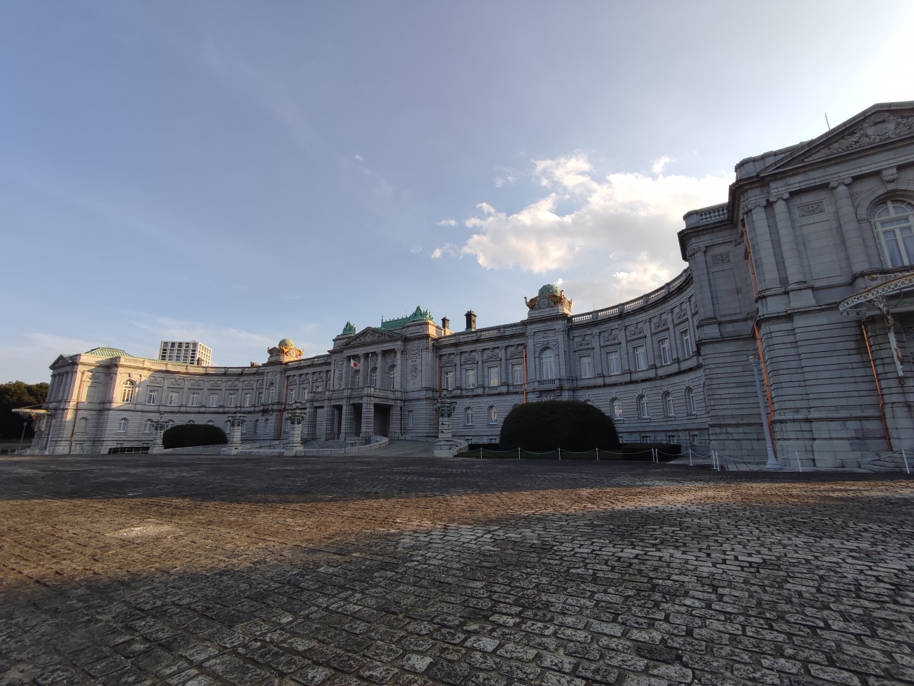 国賓が来た時に使う迎賓館赤坂離宮。テレビでは見たことがありますが、すごい豪華です。厳重警備で中では写真が撮れませんが、とてもすごいです。