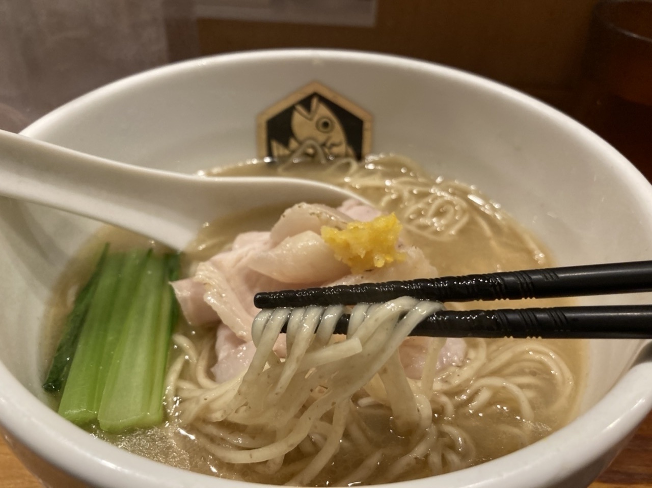 錦糸町駅南口から歩いて数分のところにある人気のラーメン屋さん。ここは真鯛が上に乗ったラーメンで有名なところ。訪れた時も行列ができていましたが、回転が良いようで、行列は比較的早く進んでいました。食券を購入したあとは着席前でもすぐに回収されるため、着席したらほとんど待たずに料理が運ばれてきました。