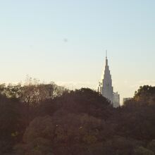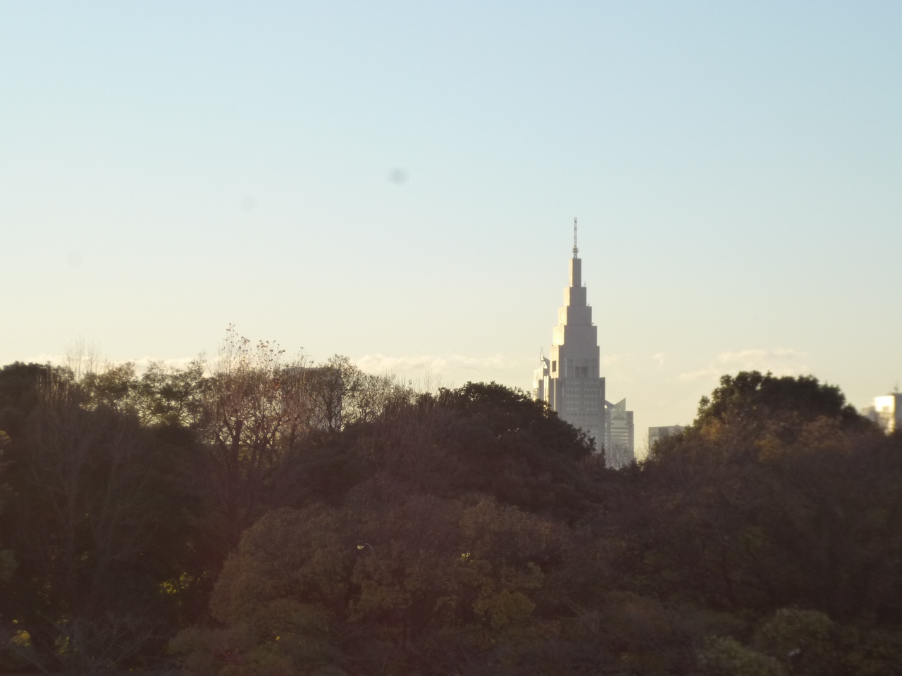 夕暮れ時に上智大学真田堀運動場脇の遊歩道を歩いていると赤坂御所の緑の向うにドコモタワーの姿が見えました。夕陽を浴びた姿は美しく、セントラルパーク越しに見るNYCの摩天楼のような雰囲気を感じました。今まであちらこちらでドコモタワーの姿を目にしてきましたが、印象に残る光景のひとつでした。