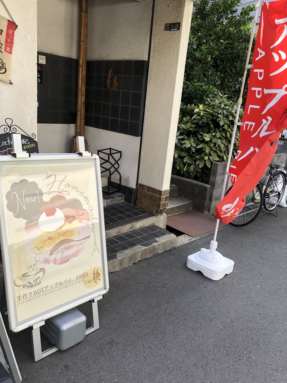 お店の構えがなんとなくスナック風だなと思って店内に入ると棚にはお酒の瓶があったので、夜はお酒を飲める店になるみたいです。ギターも置いてあってミニライブなども行われるよう。甘さ控え目のプリンケーキが美味でした。丁寧に入れた珈琲もおいしかったです。